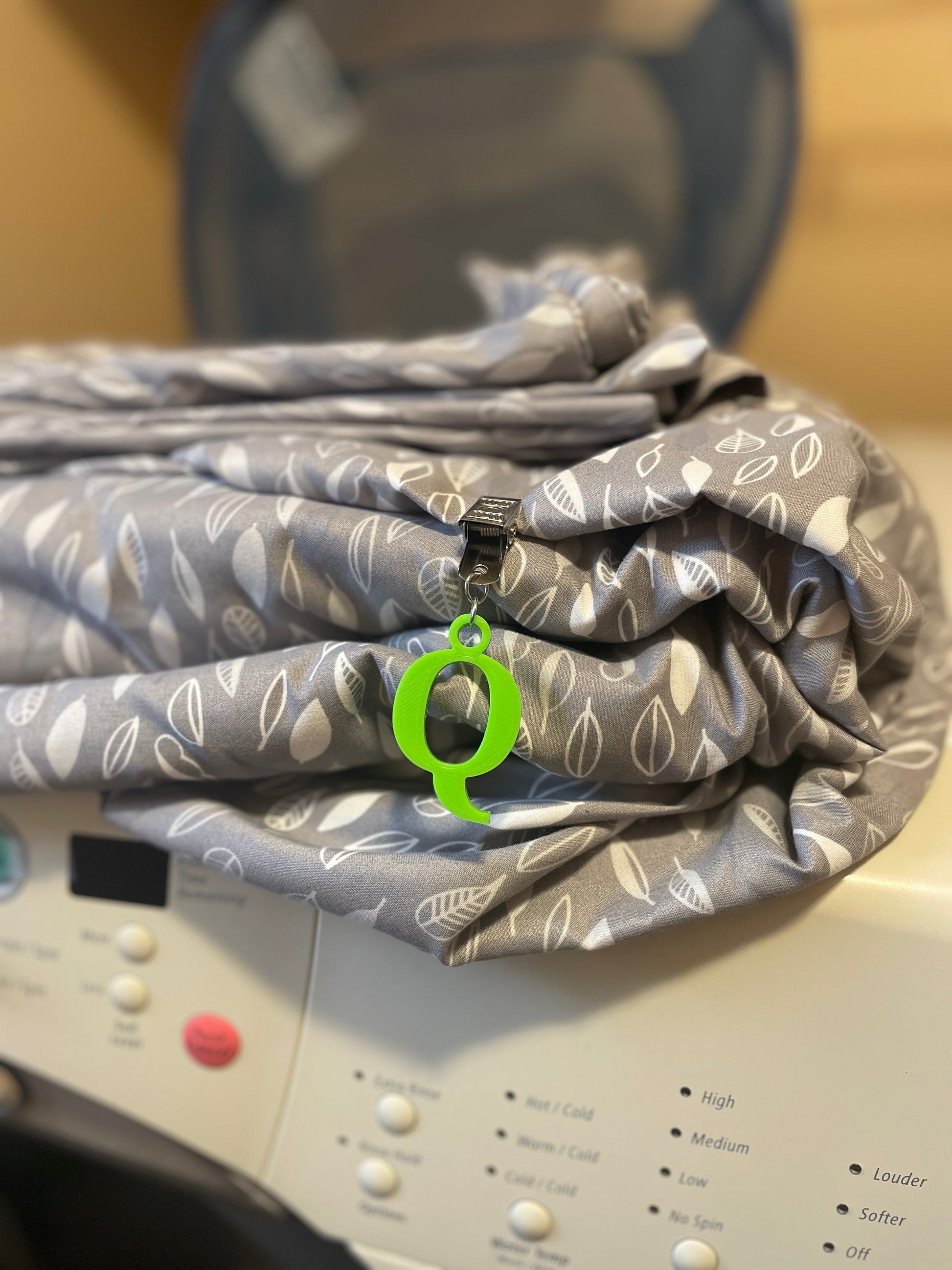 You can use them for fitted or top sheets too. They come in Green “Q” queen, blue “T” twin, Orange “K” King, or “F” Full. Each letter is approx 2” by 2” They come in 4 packs.