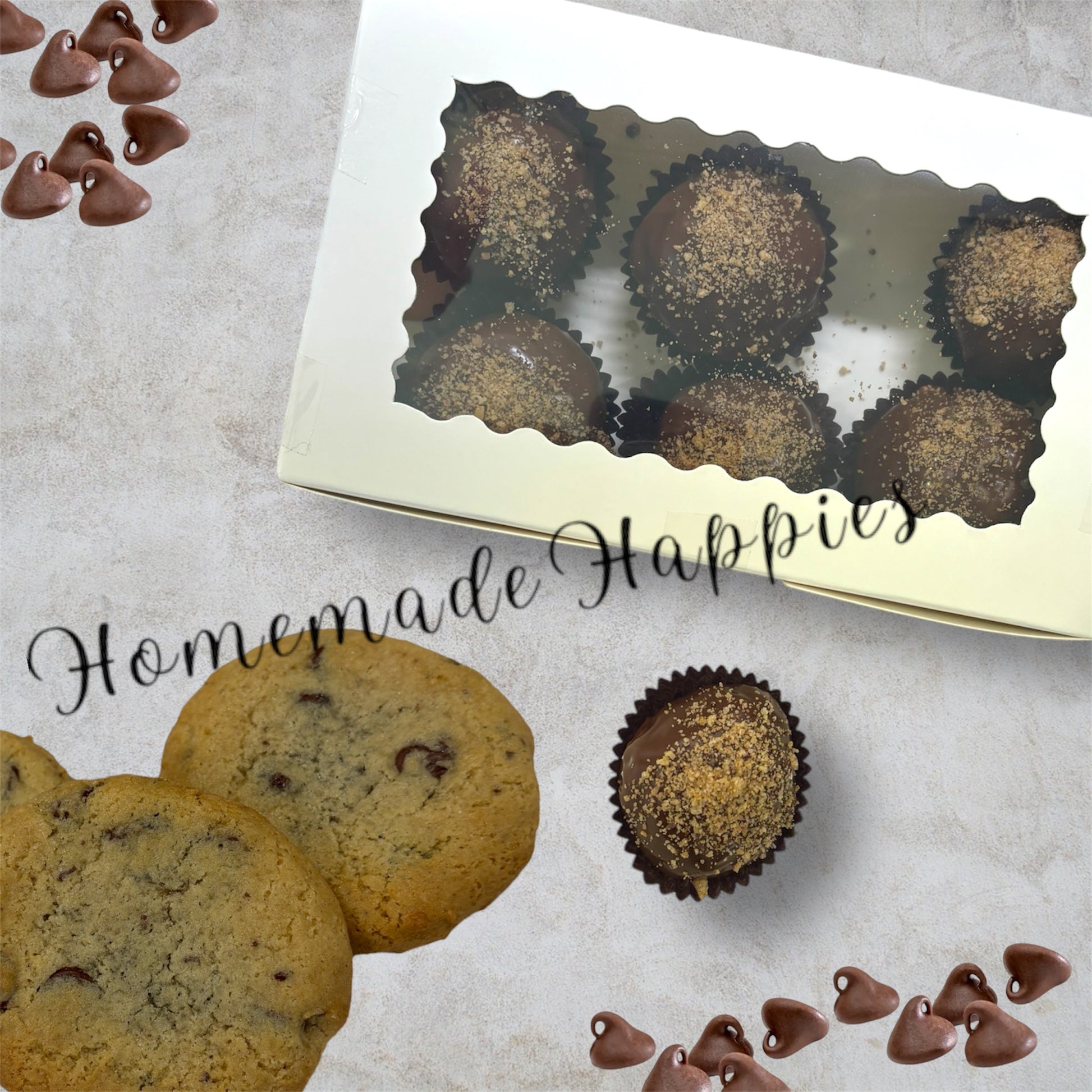 These truffles are just a little different, but just a lot of good!! Made with my homemade gluten free chocolate chip cookie as a base these generous sized truffles are then dipped in semisweet chocolate and sprinkled with cookie crumbs. Yum yum!!