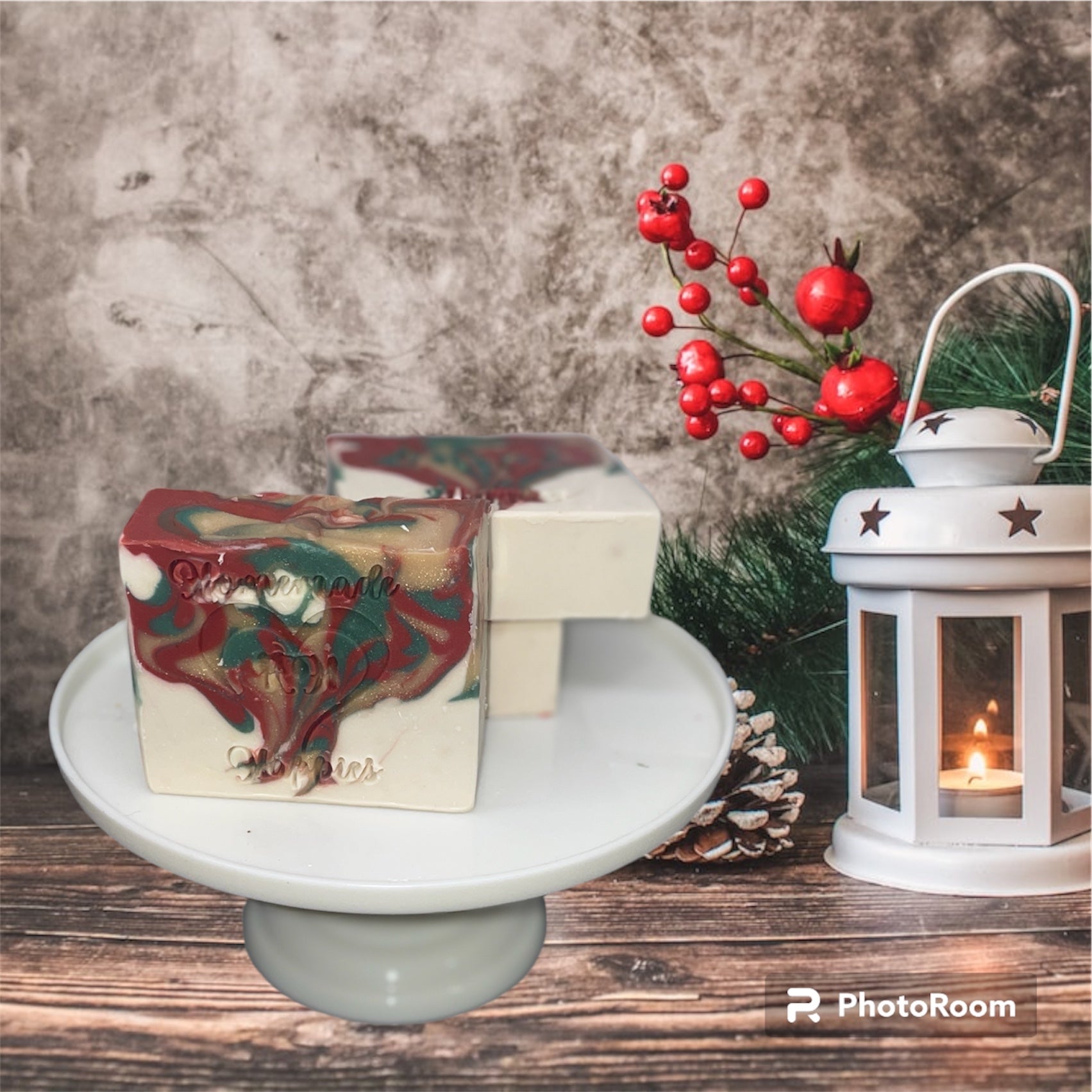 One smell of this amazing bar of soap will conjure images of Santa sitting in his study as he relaxes with a good book. It is swirled with all of the Christmas colors. The scent is a combination of pine trees, leather books, and a hint of Santa's pipe.