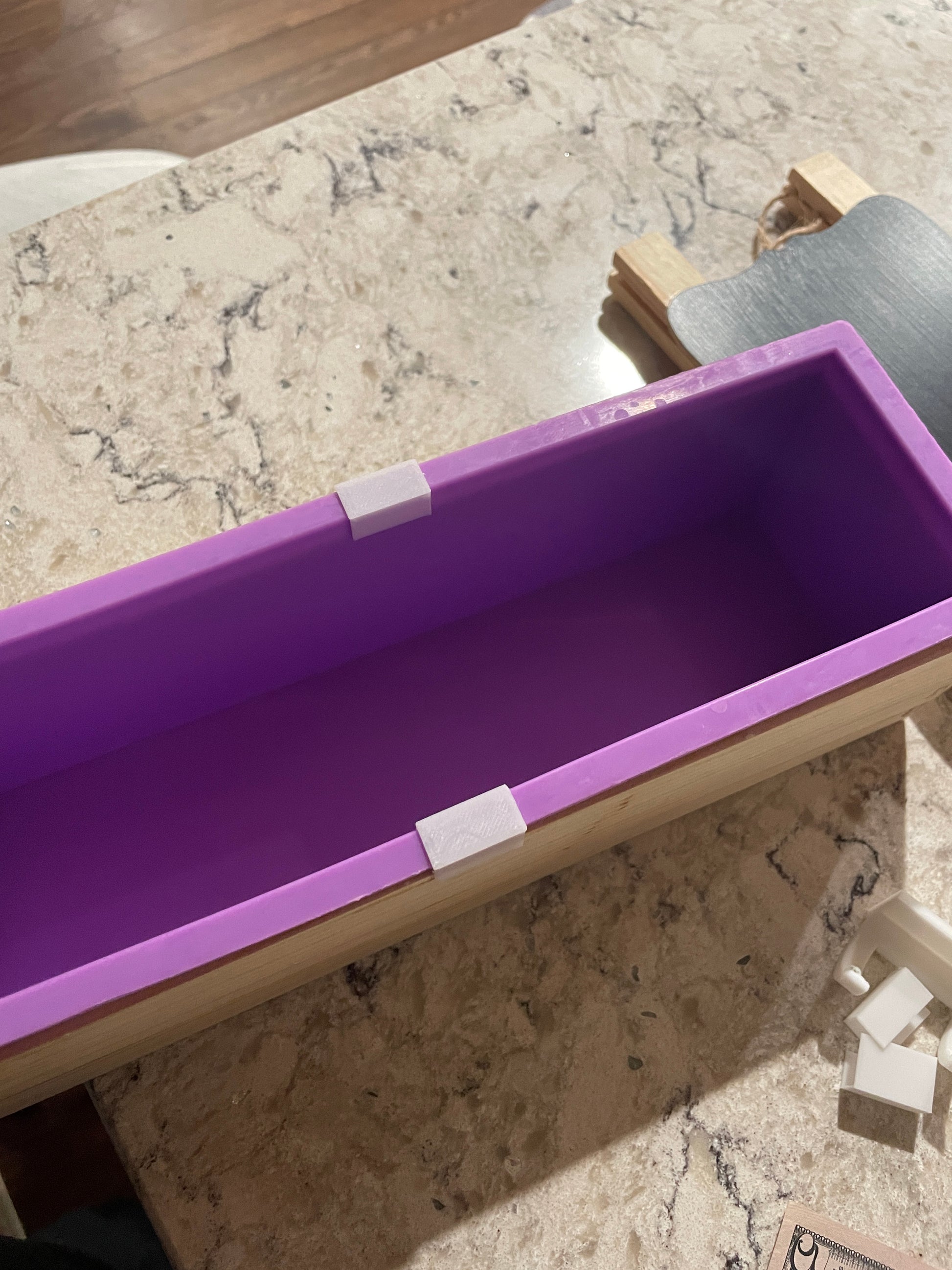 These soap mold clips work great to prevent the flop in of the Amazon purple molds. I absolutely love the mold but hated the flop! These work fantastic and keep my mold where it needs to be! Easy to remove if you pour to the top and thin enough not to impede on pouring!