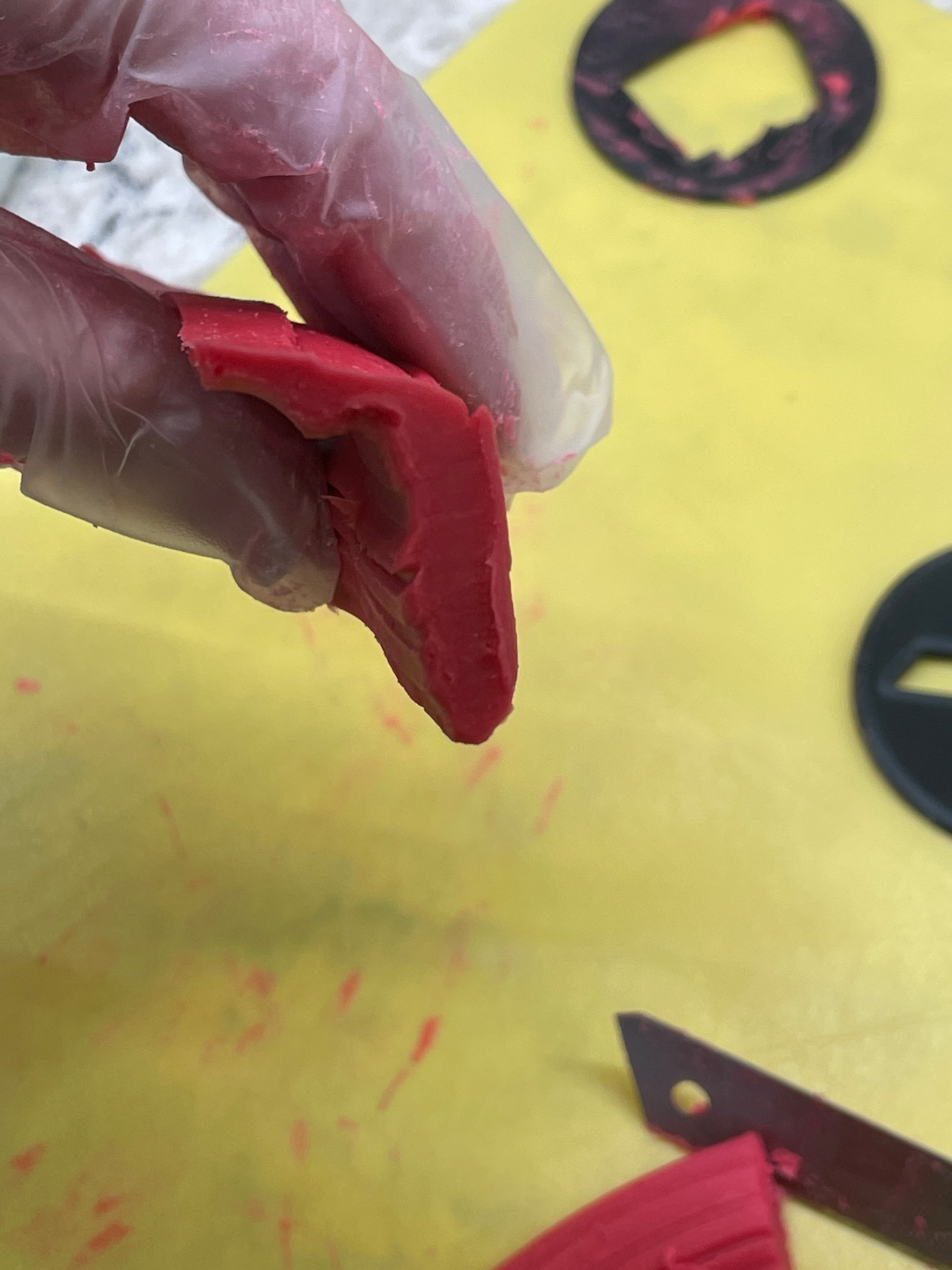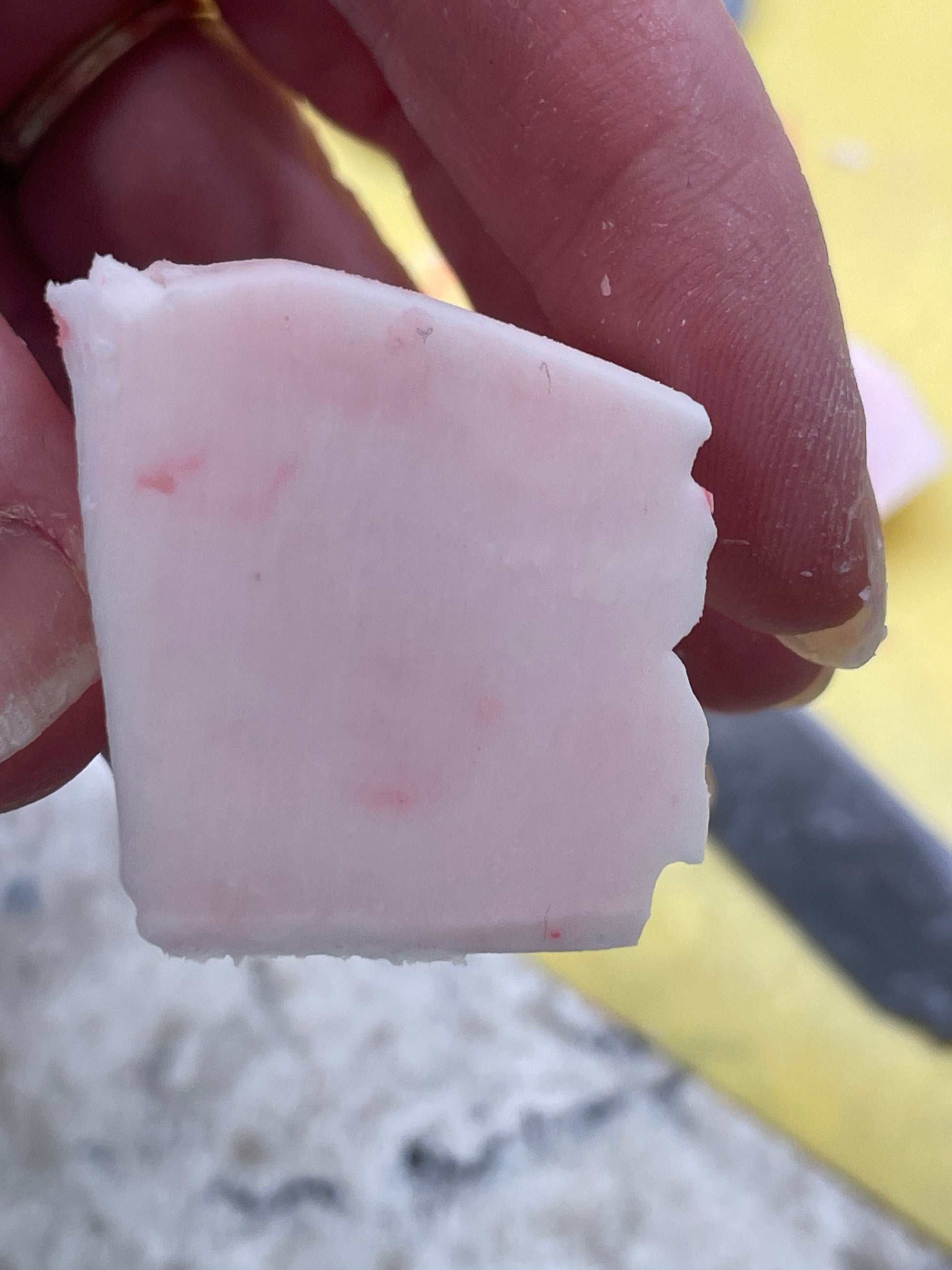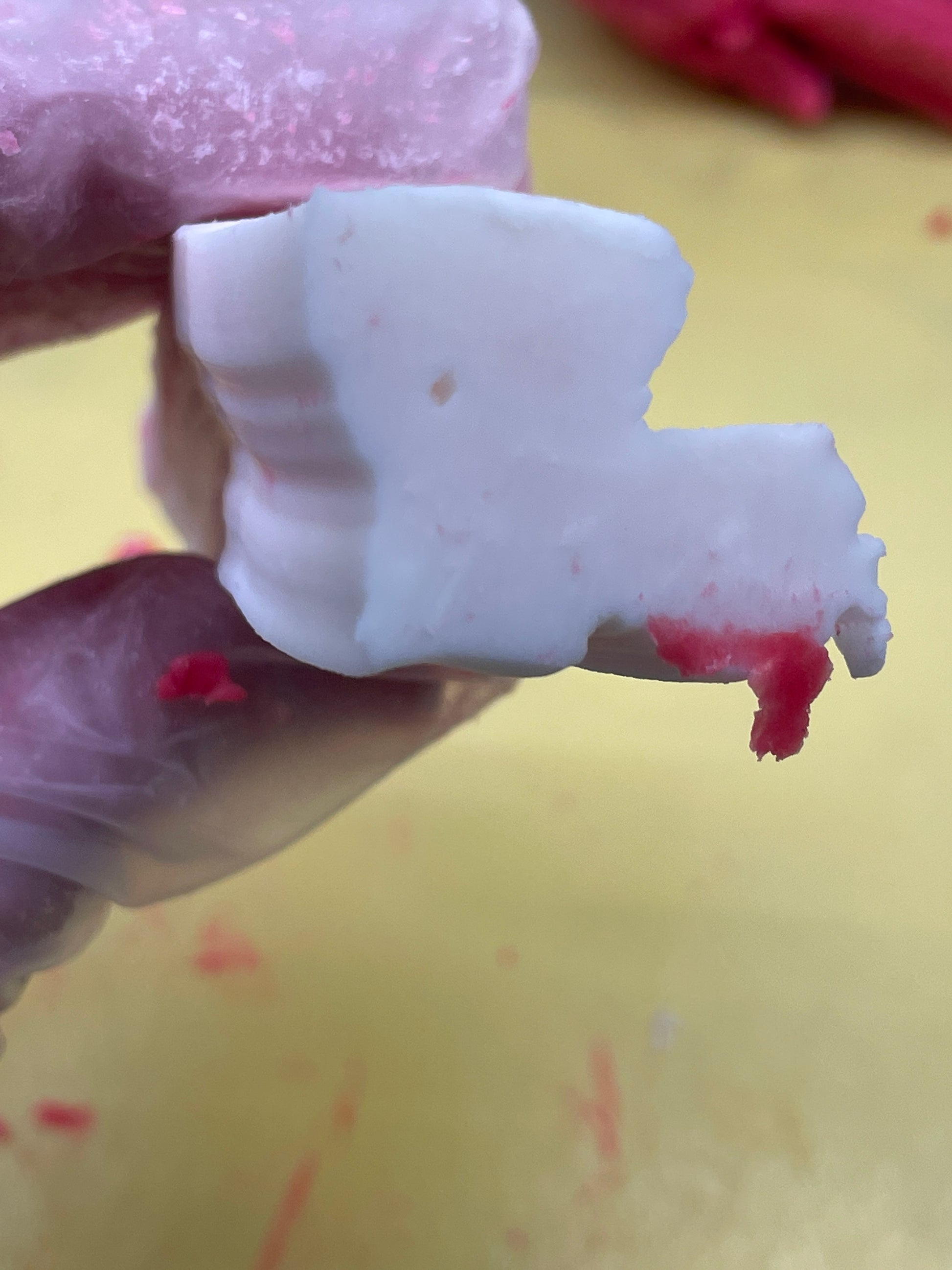 -I first tried putting in a container that was too tall & deep and my recipe gel'ed thus giving me soap that wasn't good for extruding (too hard and had 'chunks' of partially gelled soap).