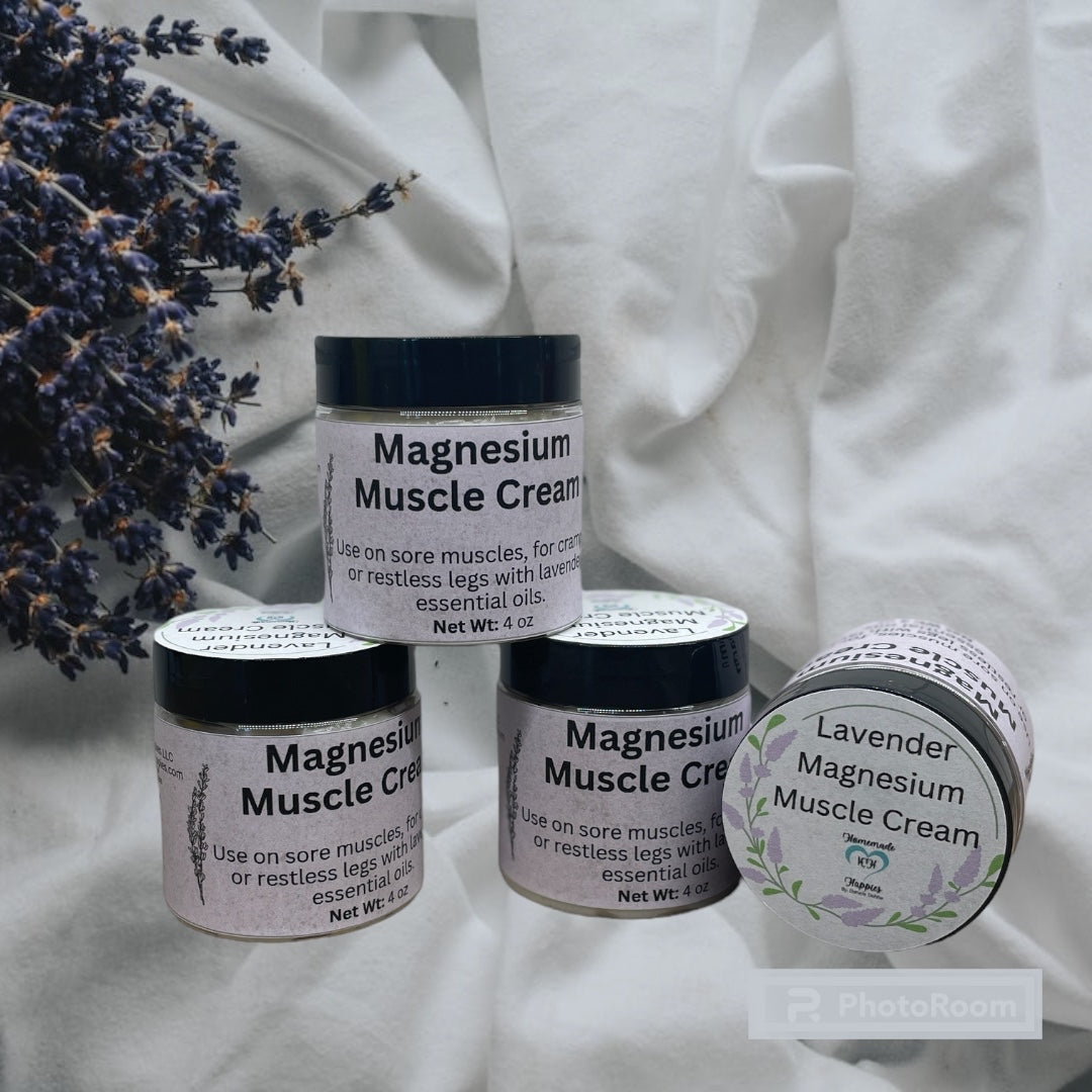 This awesome muscle cream is packed with Magnesium oil to help soothe sore muscles. Use it for still sore muscles, aches and pains and restless legs! It’s also full of moisturizing mango and shea butter. It has a light lavender scent to help relax you even further.